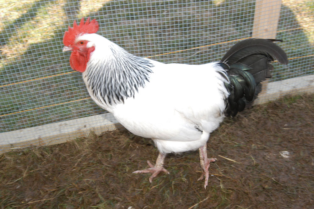 Light Sussex Cockerel a good bird for its meat. One of the oldest breeds. Sussex Breed