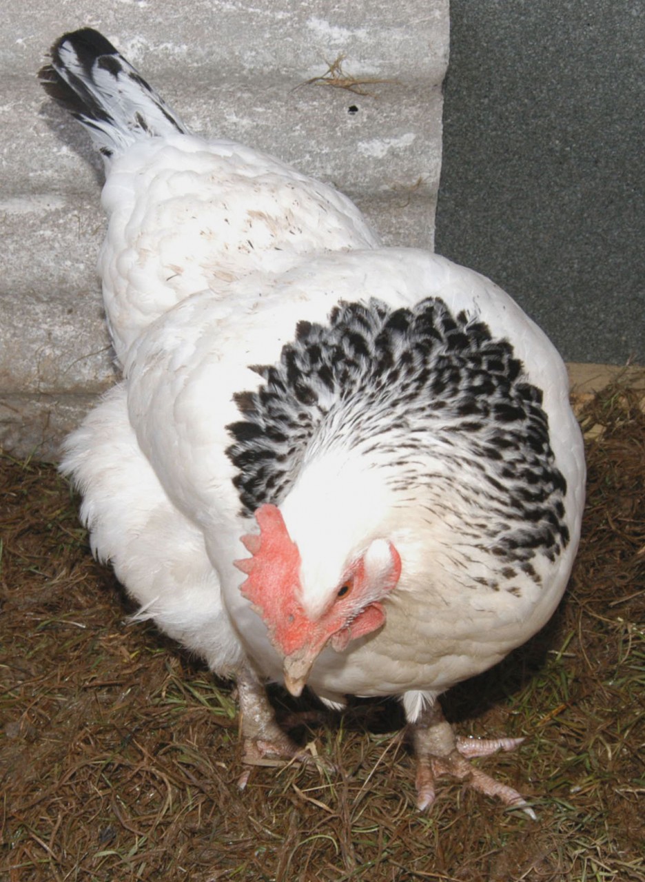 Light Sussex Hen, cream/light brown eggs, a good bird for its meat. One of the oldest breeds. Sussex Breed