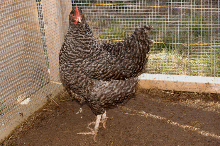 Maran Hen, dark chocolate brown eggs. This is a good chicken which produces large dark brown eggs, and has good quality meat. The French developed the breed as dual purpose with good table as well as laying properties